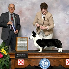 Knight is currently our only male Cardigan. He is fully CHIC-level health tested. He is doing well in conformation, nosework, and rally. He is AKC major pointed.